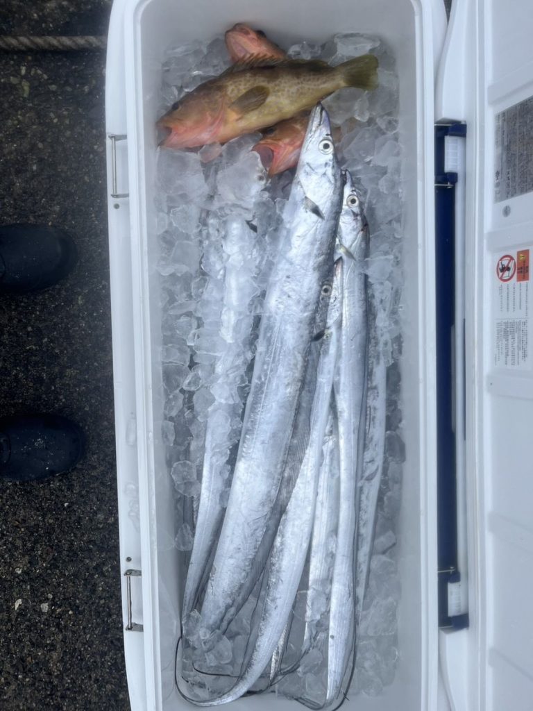 本日はタチウオ甘ラバリレー便にて出船致しました。タチウオは食い渋り、天秤の方は中々当たりを乗せられず、サゴシの活性も高くラインブレイクや手前祭りが多く中々数が伸びませんでした。テンヤの方は時合いに上手く掛けていかれ、バラシもありつつトップの方は4時間半で15本釣って行かれました。リレーの甘ラバは先日天秤でそこそこ顔を見ていたので上調子に期待していたのですが、ラバーに反応するのは根魚ばかりで本命顔見ずでした。