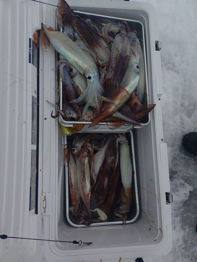 イカ便で出航してきました。竿頭で40杯と渋かったですが、今年90歳の長老が大奮闘しておられました。