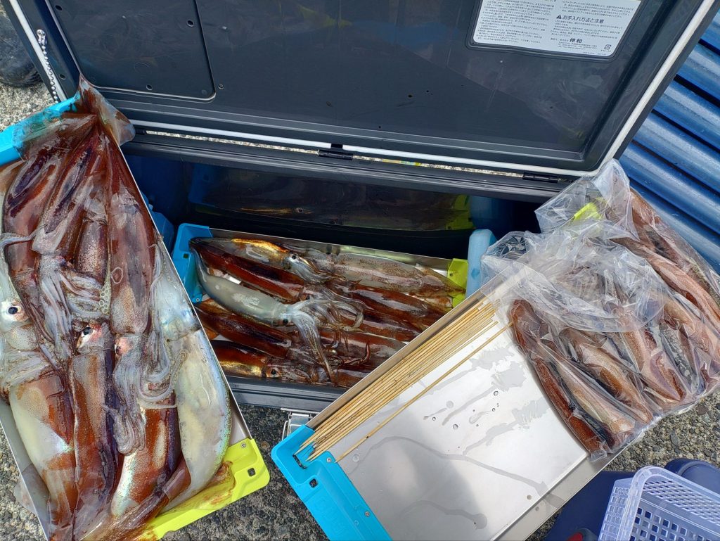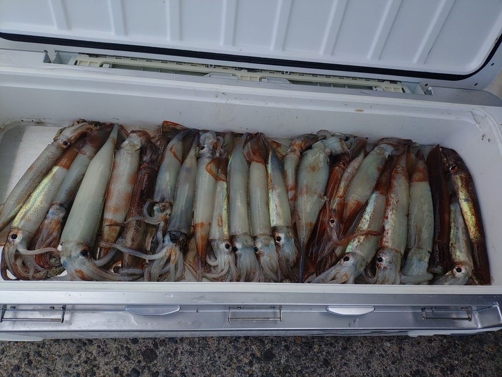 イカ便で出航してきました。昨日よりはましで、竿頭で35杯釣れました。
