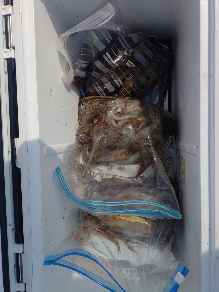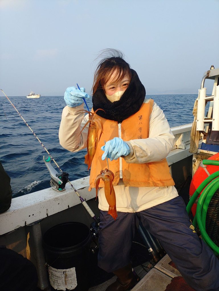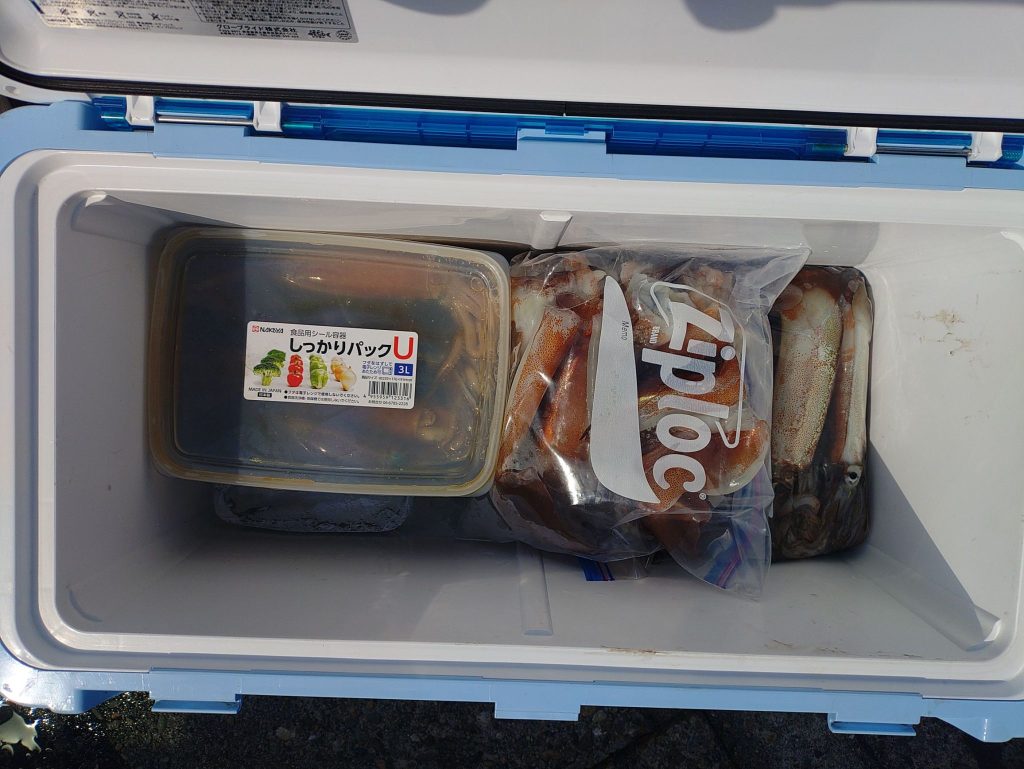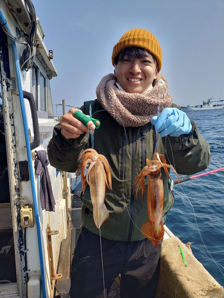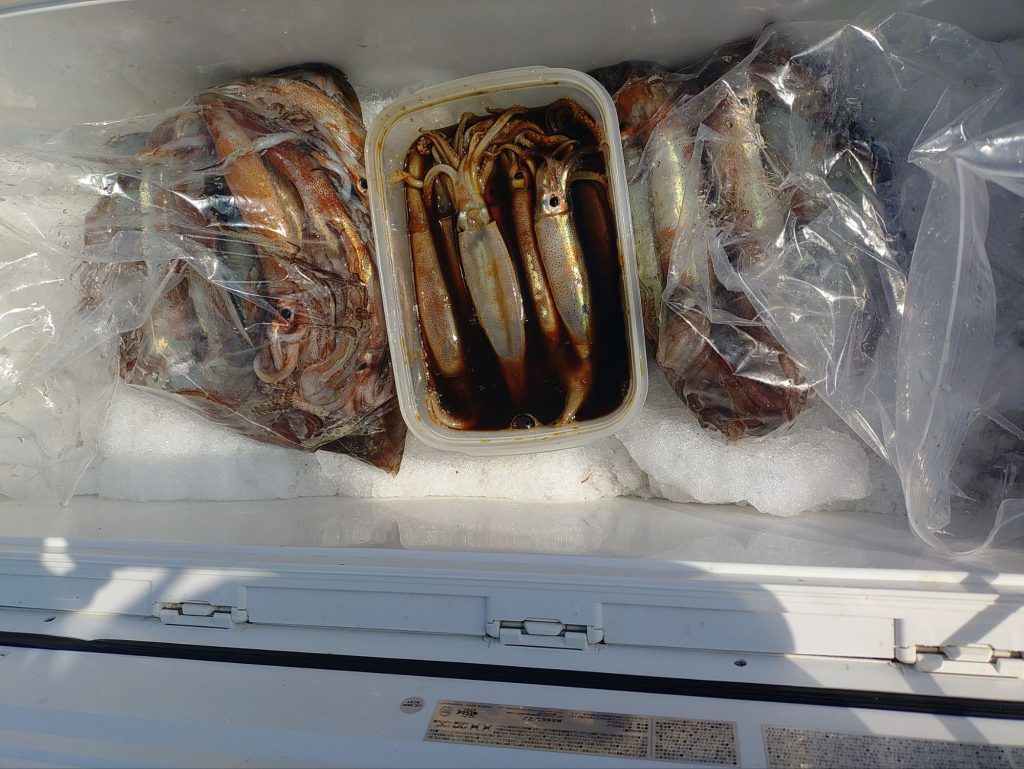 イカ便で出航してきました。今日は、この数日の中で1番ましで、イカ釣り初挑戦のお客さん2人も少し楽しめました。